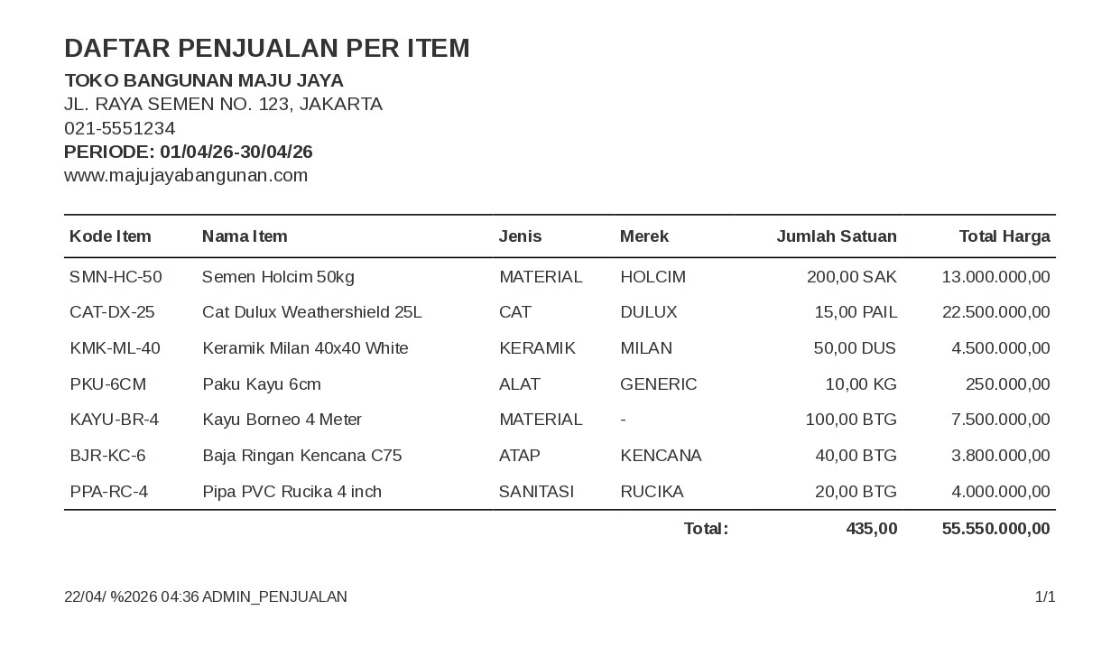 Contoh Laporan Penjualan Bulanan Toko Bangunan