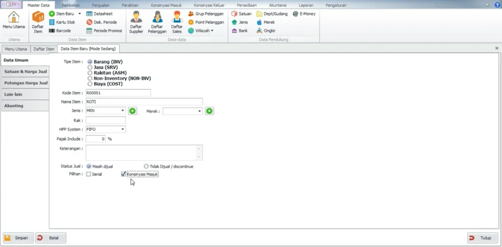 - Input Konsinyasi Masuk: Mencatat barang titipan tanpa harus melakukan pembayaran di awal.
