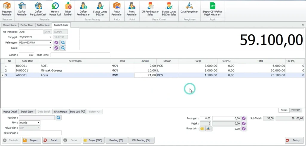 - Otomatisasi Harga: Harga akan langsung berubah saat nama pelanggan dipilih atau jumlah barang ditambah sesuai aturan yang telah disetting.