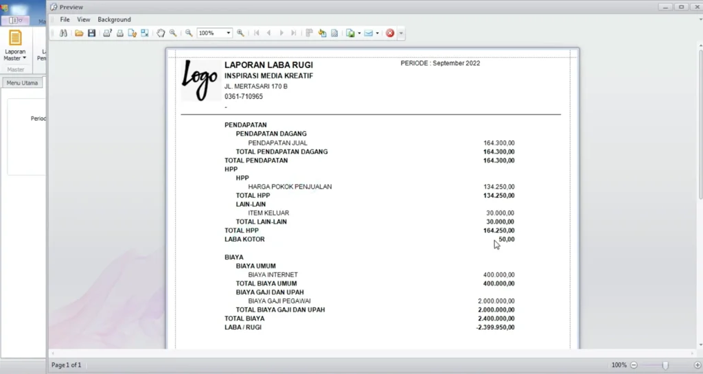 - Laporan Laba Rugi: Menampilkan rincian pendapatan dikurangi harga pokok dan biaya operasional untuk mengetahui keuntungan bersih toko.