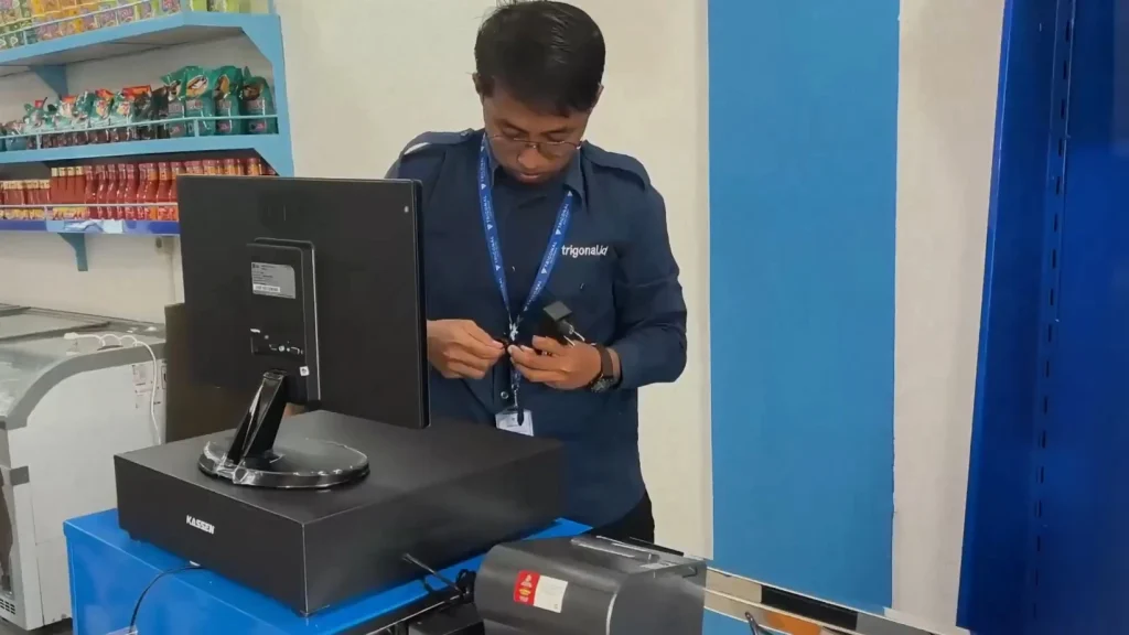 Trigonal Software memberikan solusi end-to-end, mulai dari pemasangan perangkat hingga pelatihan aplikasi kasir untuk toko alat listrik Nusantara. Dengan pendampingan langsung seperti yang dilakukan Mas Arfan, staf toko diajarkan cara input transaksi hingga proses tutup tahun.